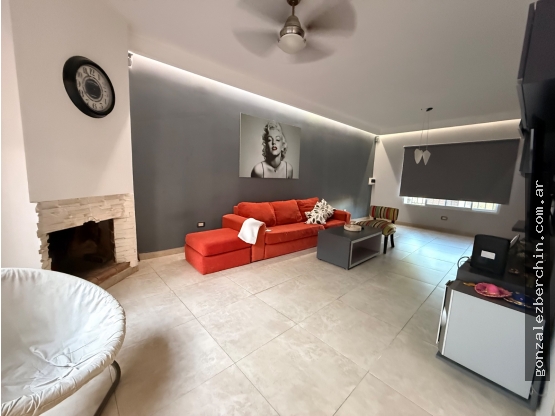 La porpieda se distribuye en, planta baja, un espacio social de living-estar amplio con hogar, que nos da acceso a un patio de invierno que conecta brindado mucha luz a la cocina totalmente amoblada con barra desayunadora e intregrada con el comedor, baño completo (bañera con jacuzzi), 2 habitaciones de buen tamaño, patio seco con baño de servicio y espacio de lavanderia, el cual conecta con la cocherra pasante, espacio de quincho con parrilla,